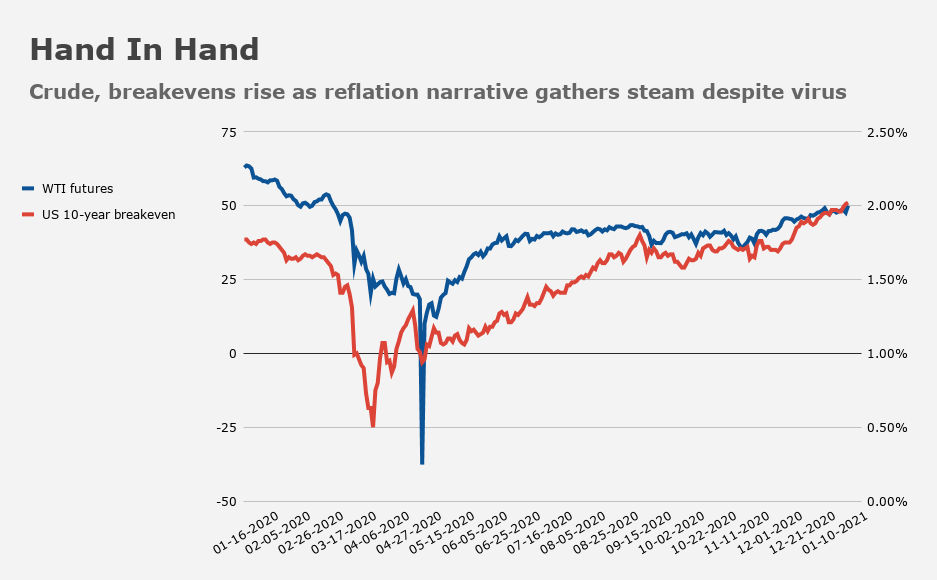 Again, the viability of the reflation narrative hangs at least partially on the outcome of the Georgia vote. The balance of power in the Senate will determine whether Biden’s agenda is obstructed wholeheartedly, or merely hampered by a slim majority and a reluctance on the part of centrist Democrats to lean too far left.
